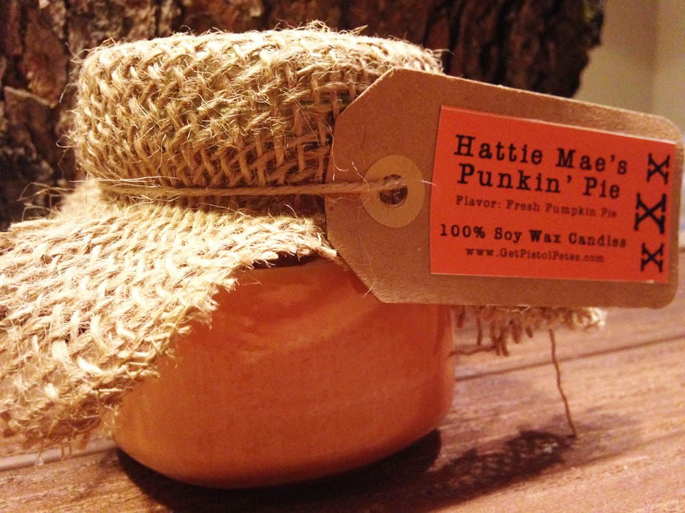 It's that time of year again, or maybe not... either way, pumpkin candles rule! So purchase the Pistol Pete's Hattie Mae's Punkin' Pie candles and light up the good smells. It will smell like there is a real pumpkin pie, coming out of the oven, in your kitchen. It smells that good.