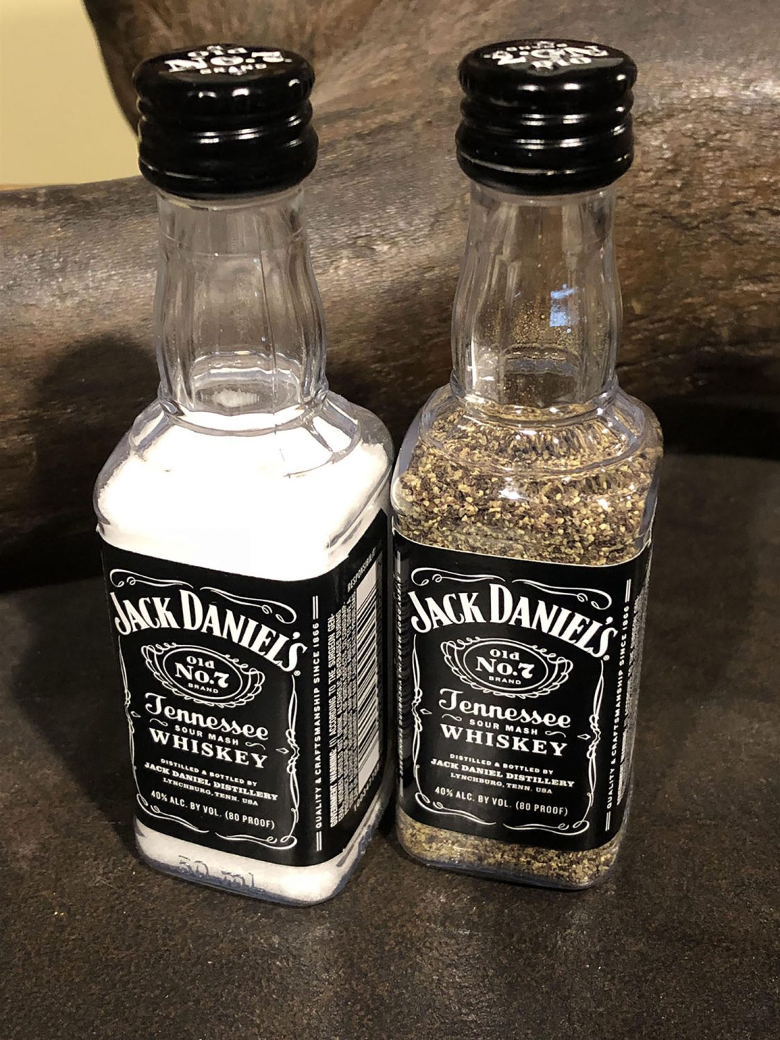 Jack Daniel's Salt and Pepper Shaker Sets are fun and make a great conversation piece for your dinner table! Give Jack Daniel's Salt and Pepper Shakers as gifts for the holidays, birthday gifts, house warming parties and more. Have a man cave or she shed? Jack Daniel's Salt and Pepper Shakers are a great rustic way to decorate your dining space or kitchen. Jack Daniel's Salt and Pepper Shakers even make great groomsman gifts!