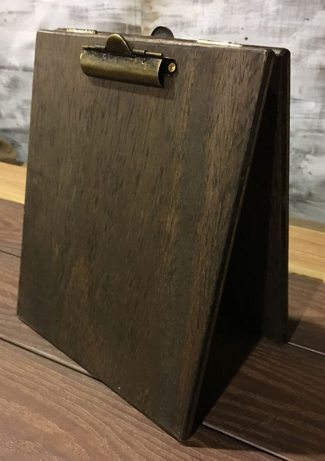 Strong brass hinges ensure these table tents will stand up to the elements at your restaurant, craft shows and anywhere else you need to display advertising. Rustic table tents also include the antique style domed clip and old style screws. Every menu board comes pre-assembled and ready to display right out of the box.