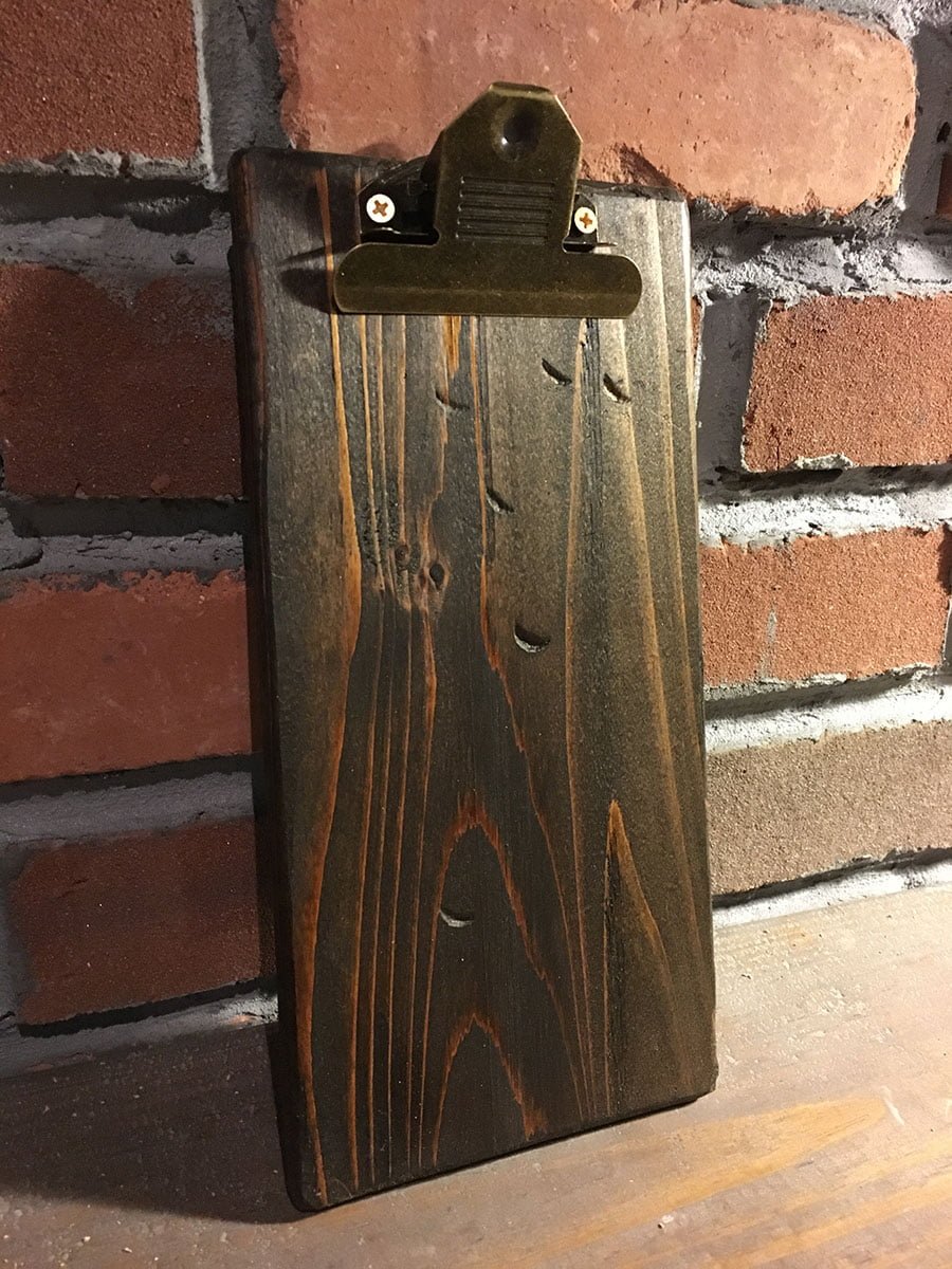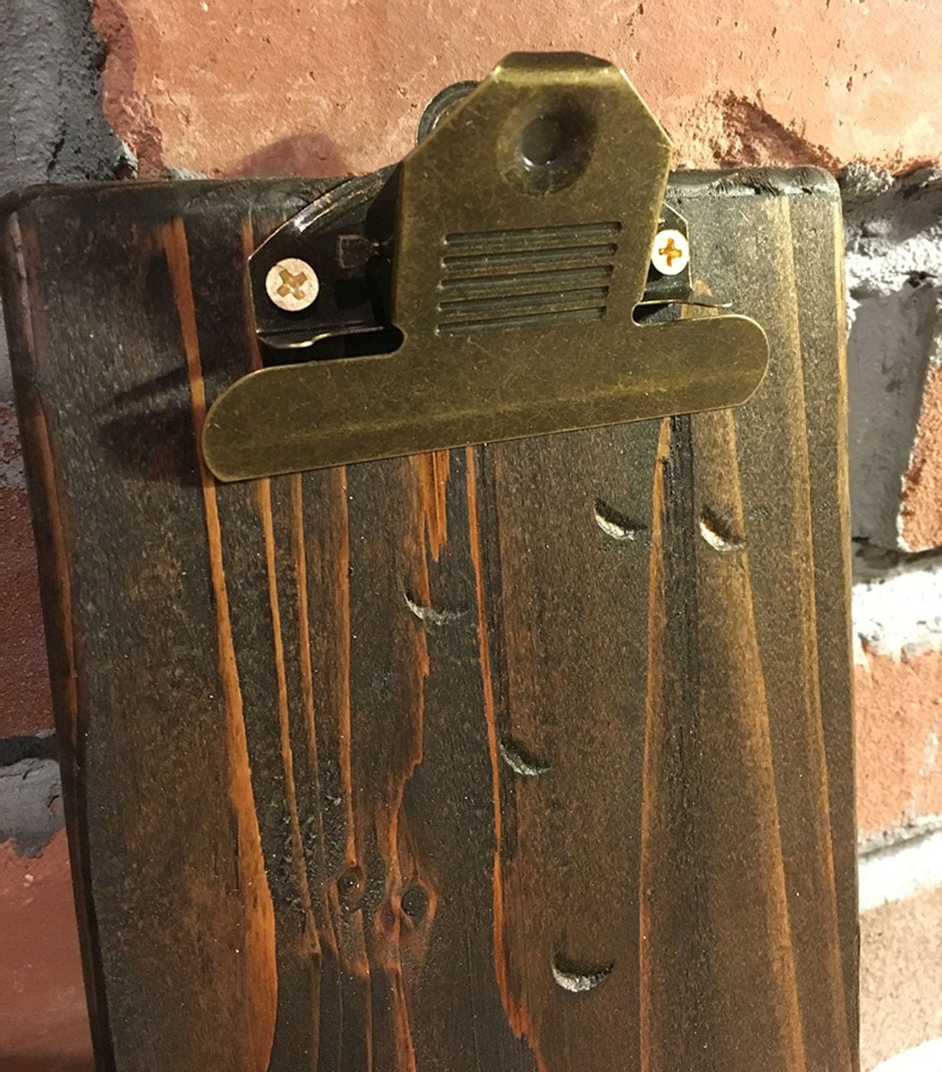 Rustic restaurant menu clipboards are great for showcasing restaurant menus, bar menus, drink menus, promotional materials on tables and more! The rustic, industrial classic clipboard menu board has hundreds of uses. They are also durable and lightweight. Made from real wood and hand finished to add that rustic charm.