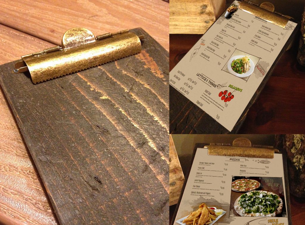 Handmade rustic wood menu boards are perfect for showcasing restaurant menus, drink menus and promotional materials. The rustic, classic clipboard menu board has hundreds of uses. They are also durable and lightweight. Made from real wood and hand finished to add that rustic charm.