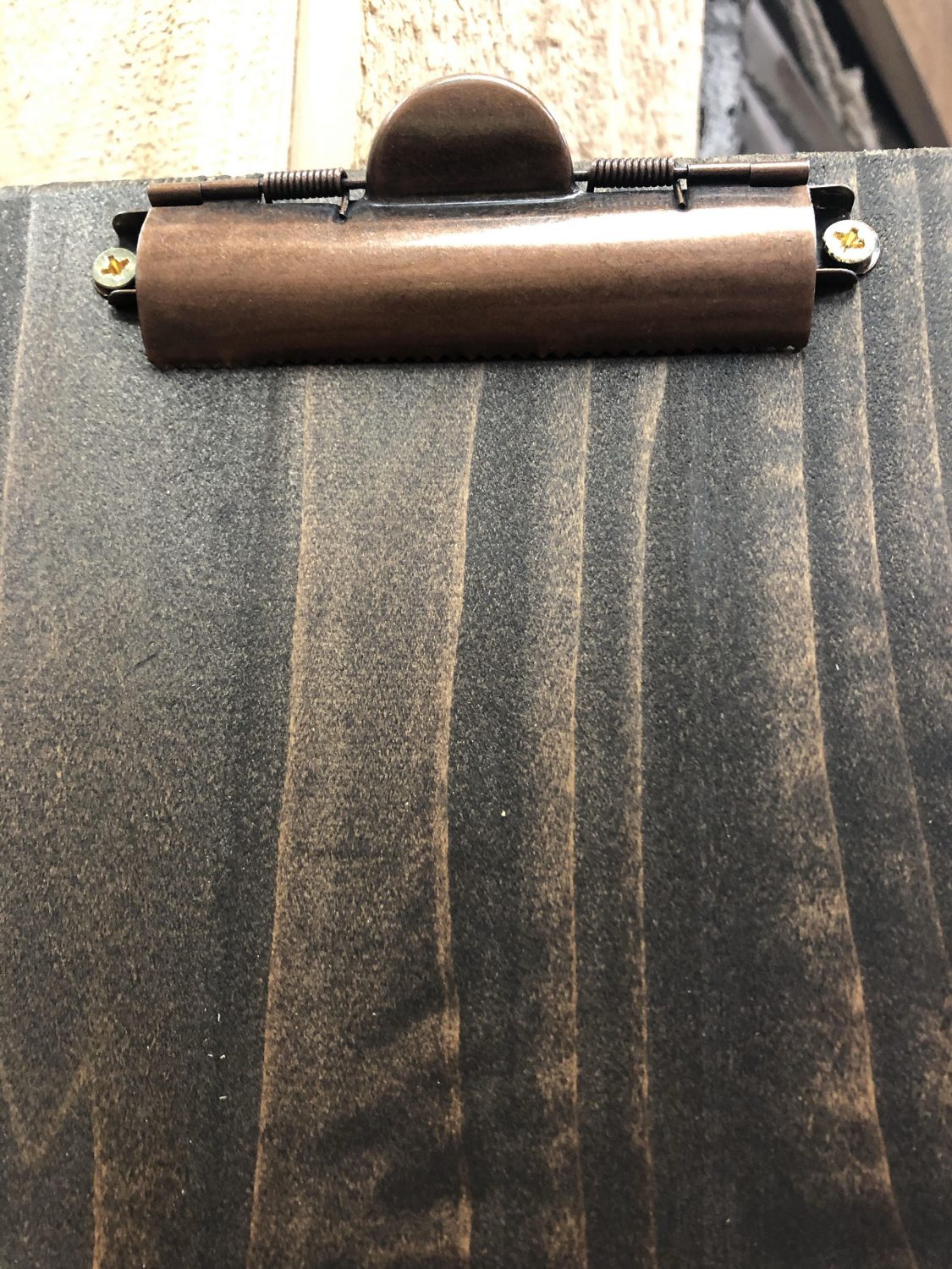 This menu board is topped off with a copper style domed clip and old style brass screws. Every menu board comes pre-assembled and ready to display right out of the box.
