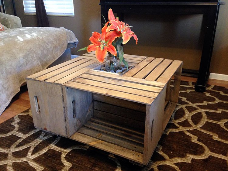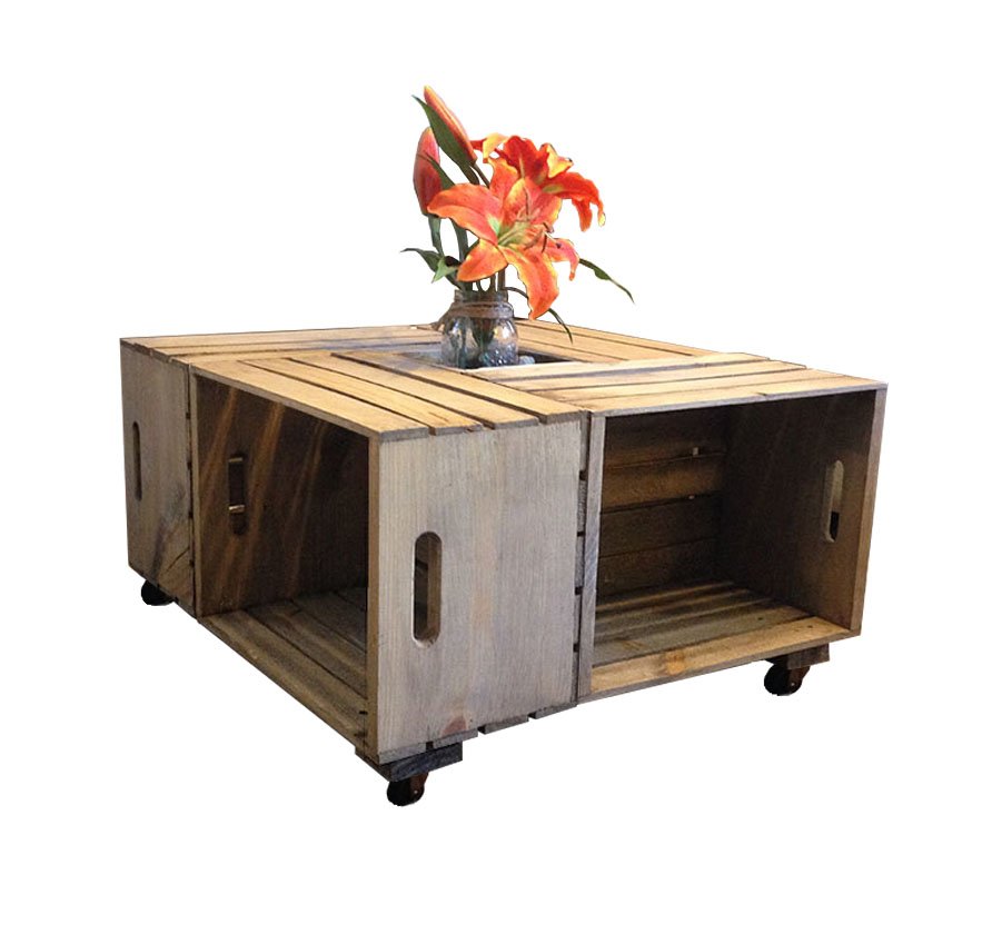 Looking for a great living room focal piece? This rustic style coffee table will be an everlasting piece of art to bring your living room or social space together. Store or display items in the crate storage space and decorate your coffee table the best way you know how. The center cubby is a great place for remote control storage or to add a candle. The vintage finish looks like real old weathered wood. The bottom of the table is fit with old style casters so you can easily move your table around your space.