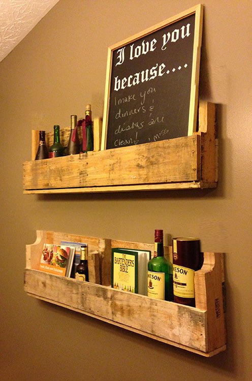 Get the modern wood look you have been wanting! Get the Pistol Pete's Pallet Shelves for your bar, kitchen, living room, man cave or any space you want to decorate with a woodland, rustic feel. Each item will vary slightly in wood features and color. We leave that up to mother nature!