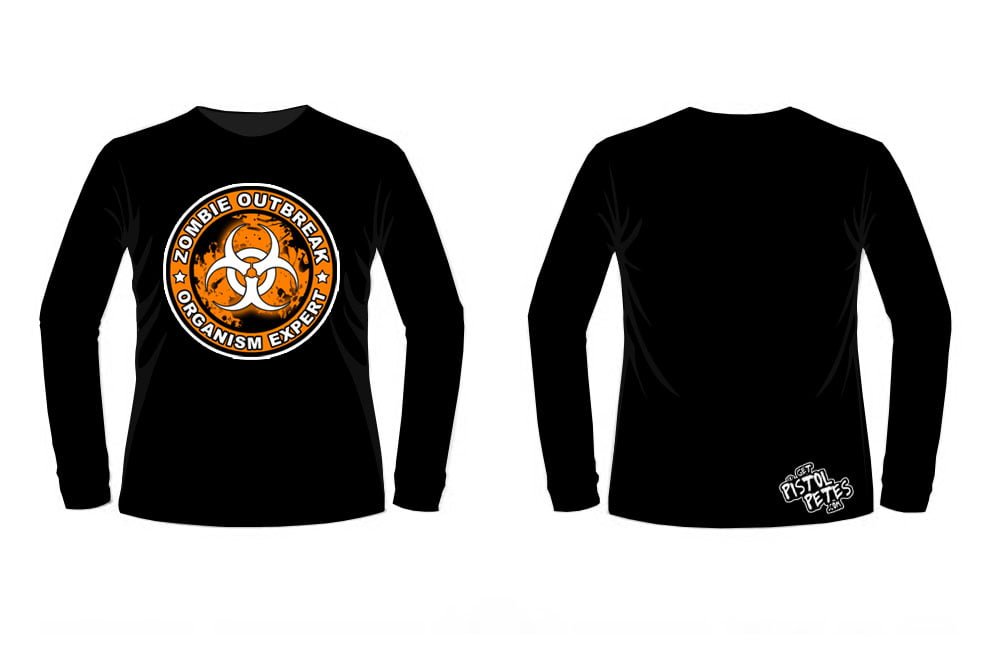 Stay warm on those cold zombie hunting days and nights! You never know what kind of climate the call of duty will put you in. So be prepared! Get the long sleeve version of the popular Zombie Outbreak Organism Expert T-Shirt!